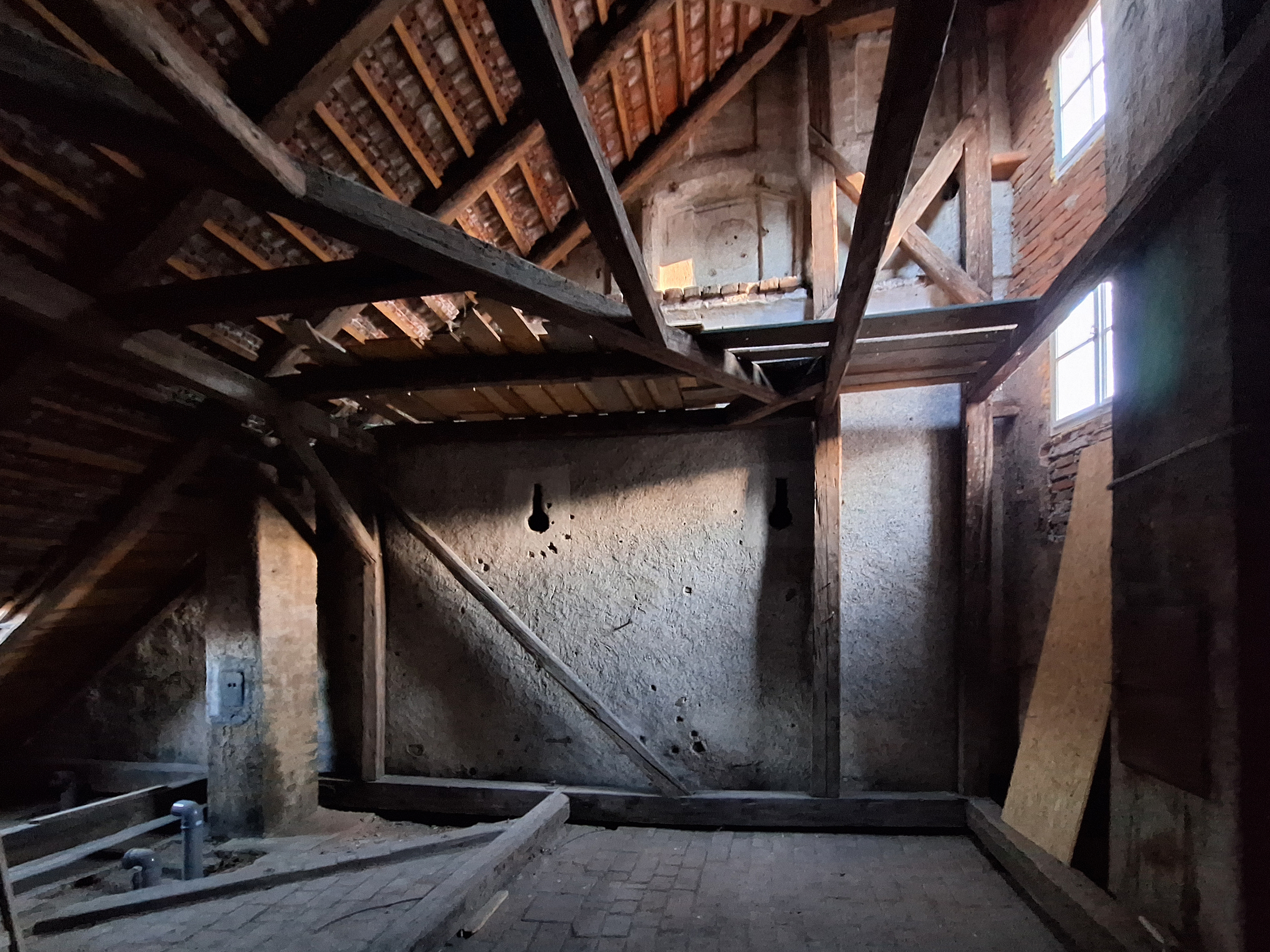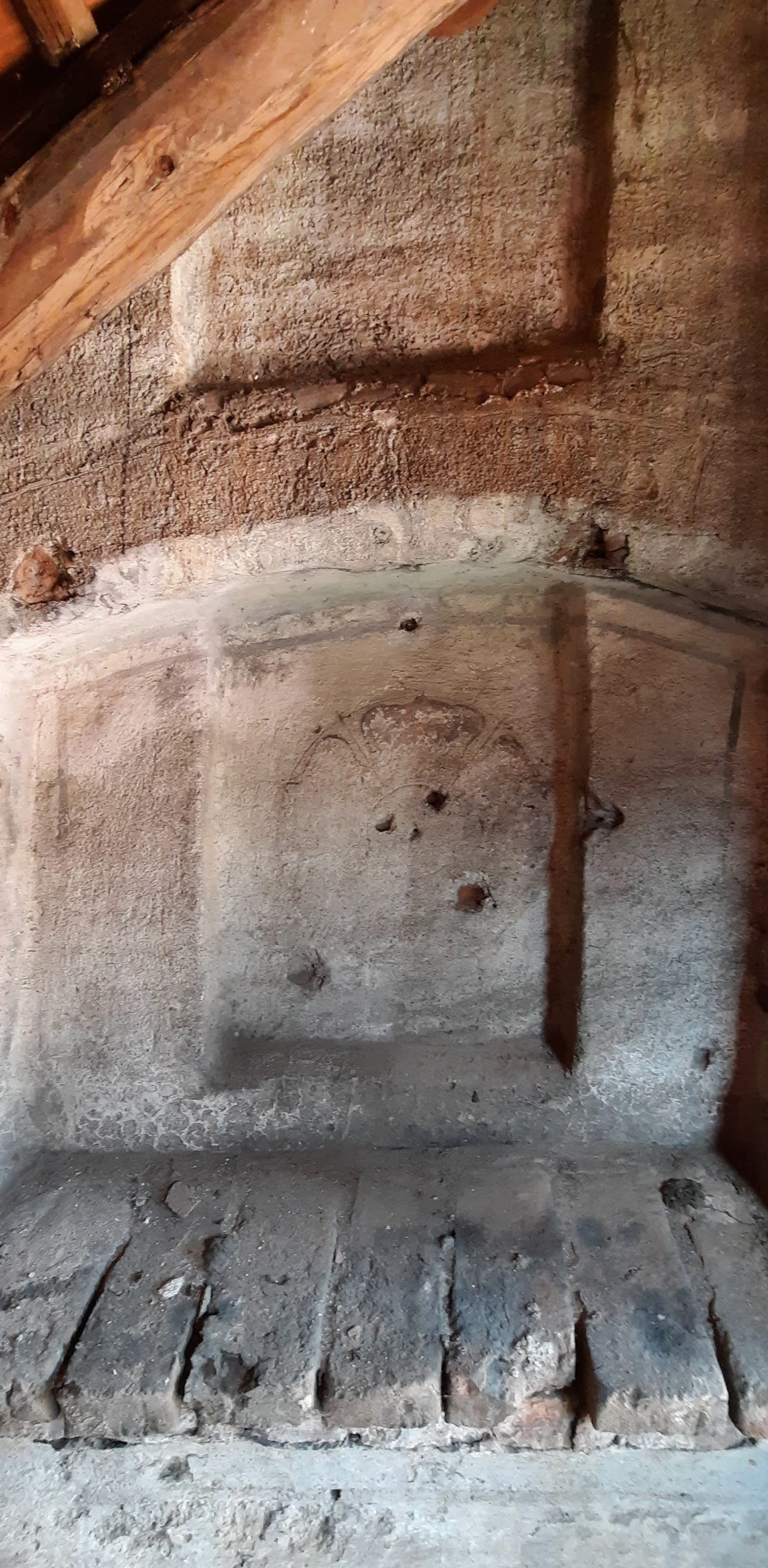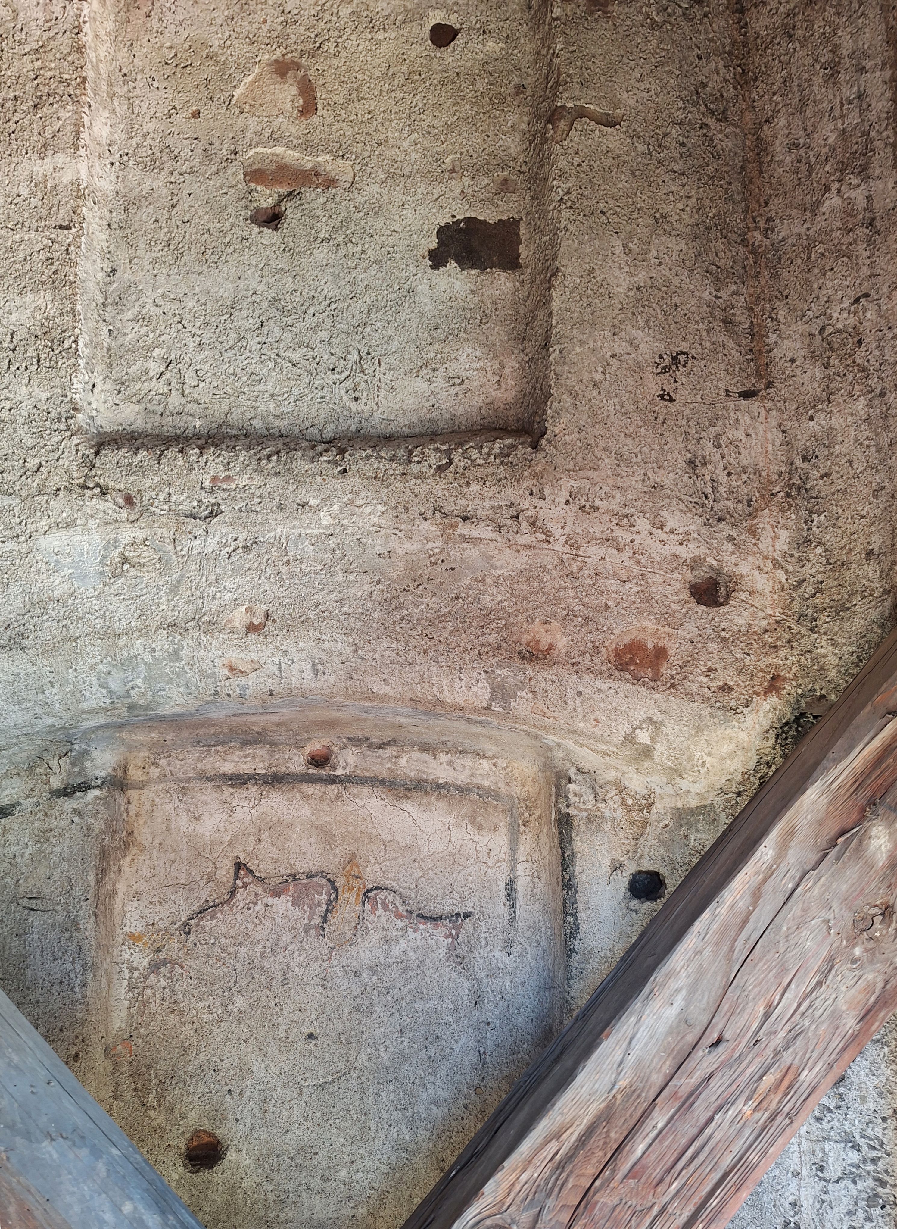 Vnější část Dolní brány v Prachaticích byla postavena v roce 1527 a na konci 60. let 16. století byla doplněna o venkovní výzdobu – heraldické pětilisté růže v nikách atikového cimbuří, obraz rožmberského jezdce a latinské nápisy zachycující devízy stavebníka. Od 19. století byla brána několikrát obnovována a její malířská výzdoba prošla výrazným restaurováním, respektive přemalováváním. Při restaurování v roce 2007 proto bylo obtížné identifikovat pozůstatky renesanční fáze výzdoby a její původní barevnost. Situace se změnila během příprav na poslední obnovu Dolní brány v letech 2023–2024. Tehdy se na dosud nepřístupné půdě sousedního domu čp. 20 podařilo na severní stěně brány objevit intaktně dochované pozůstatky renesančních omítek, výzdobných a členicích prvků, modelace klíčových střílen, ryté podkresby a malířské výzdoby.