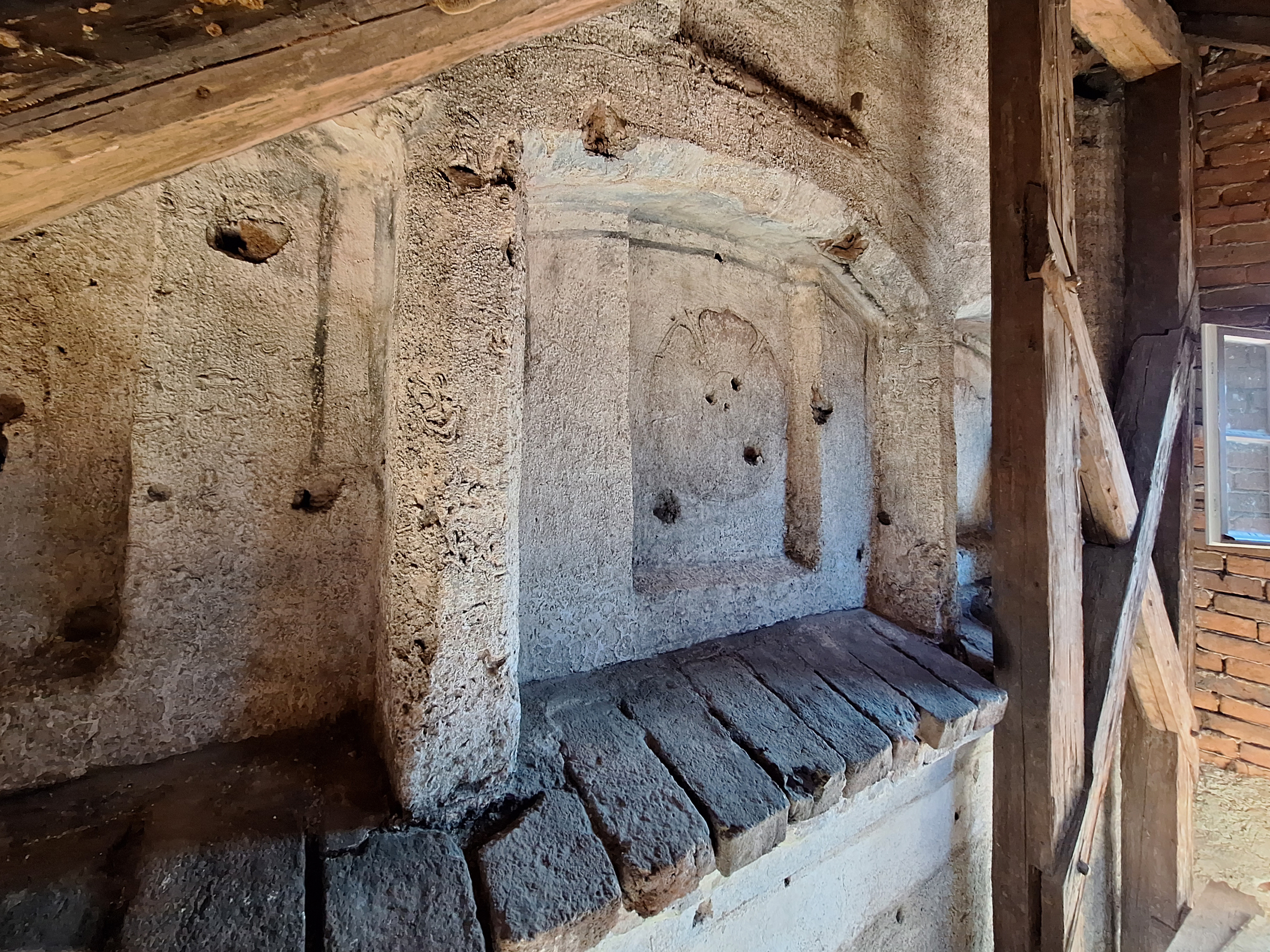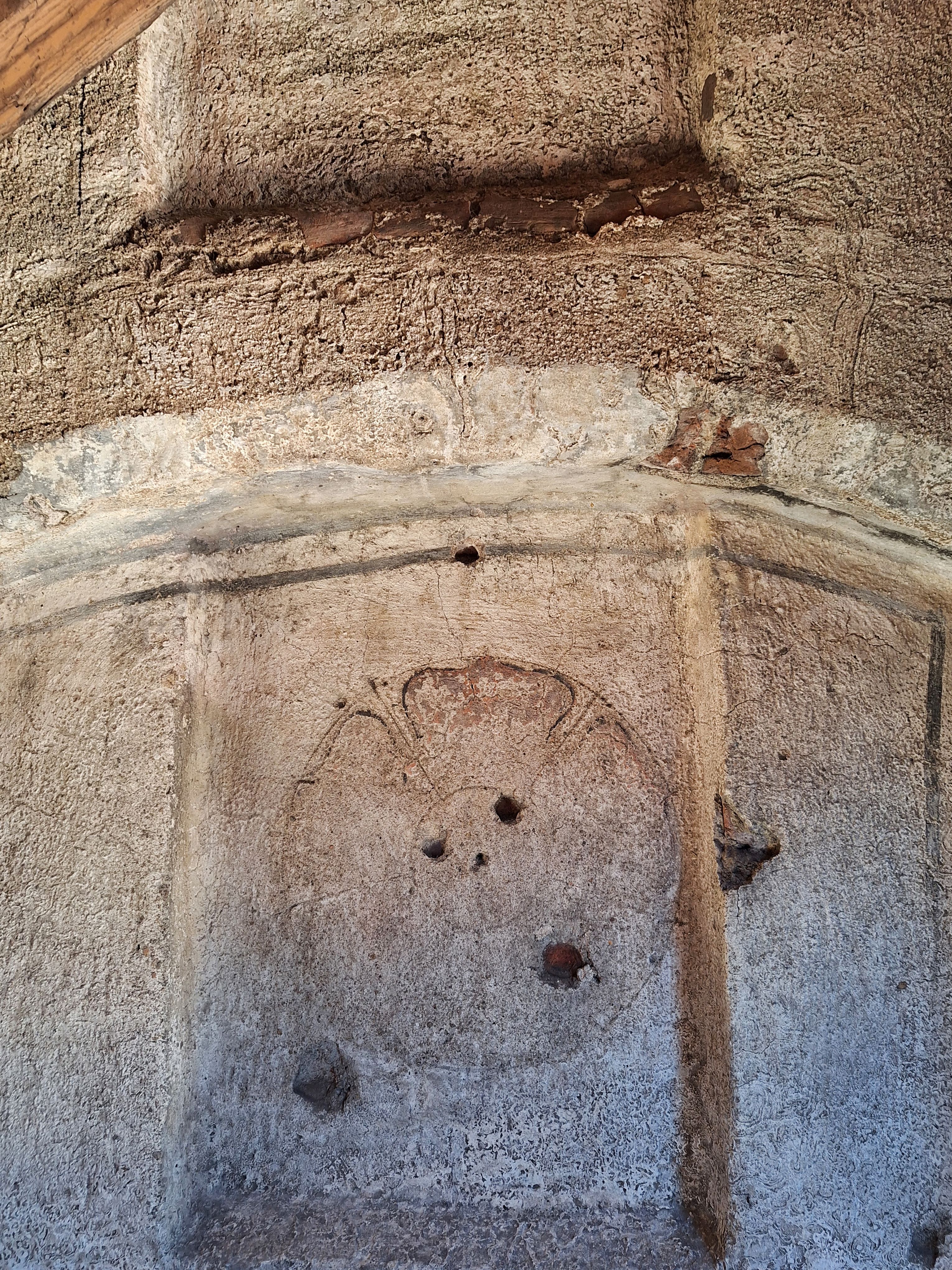 Vnější část Dolní brány v Prachaticích byla postavena v roce 1527 a na konci 60. let 16. století byla doplněna o venkovní výzdobu – heraldické pětilisté růže v nikách atikového cimbuří, obraz rožmberského jezdce a latinské nápisy zachycující devízy stavebníka. Od 19. století byla brána několikrát obnovována a její malířská výzdoba prošla výrazným restaurováním, respektive přemalováváním. Při restaurování v roce 2007 proto bylo obtížné identifikovat pozůstatky renesanční fáze výzdoby a její původní barevnost. Situace se změnila během příprav na poslední obnovu Dolní brány v letech 2023–2024. Tehdy se na dosud nepřístupné půdě sousedního domu čp. 20 podařilo na severní stěně brány objevit intaktně dochované pozůstatky renesančních omítek, výzdobných a členicích prvků, modelace klíčových střílen, ryté podkresby a malířské výzdoby.